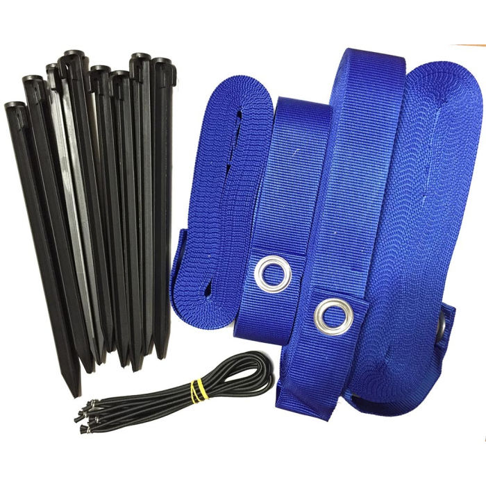 Righe delimitazione campo Beach Tennis, colore blu.Set completo con occhielli per fissaggio, tiranti e picchetti.